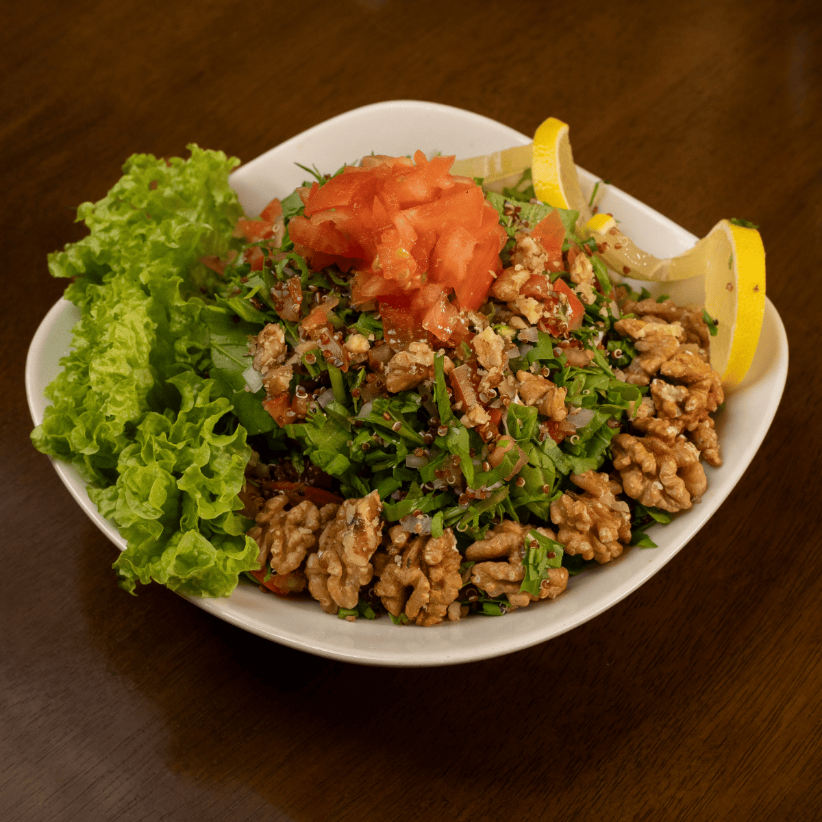 Rocca, chopped tomatoes, Quinoa, lemon sauce, olive oil