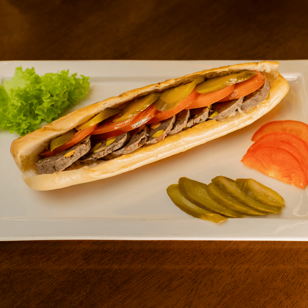 Samoon, cooked Lamb meat with Aleppo pistachios, spices and garlic, butter, tomato, Pickles